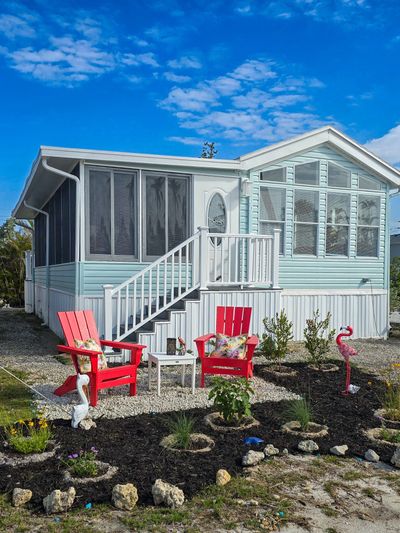 One full bathroom offers a beautiful custom tile shower, while the second full bathroom includes a washer & dryer. Back door leads to a peaceful and private sitting area. Ductless AC keeps this cottage cool on the hottest days, with heat function to keep you toasty on cool nights. Great neighbors and an idyllic island setting- this home is truly paradise found!